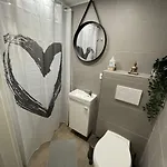 De har också utsikt över trädgården. Lägenheten erbjuder 1 sovrum. I denna lägenhet finns separat toalett och dusch.